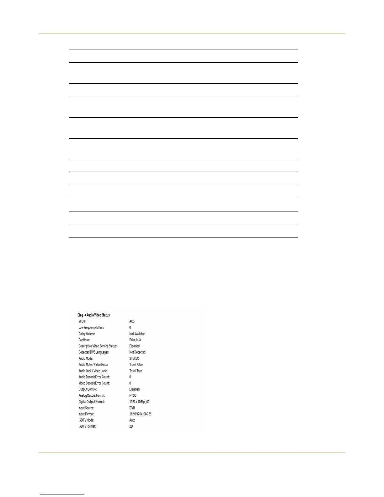 This diagnostic displays the Audio / Video status. The information is updated each time this