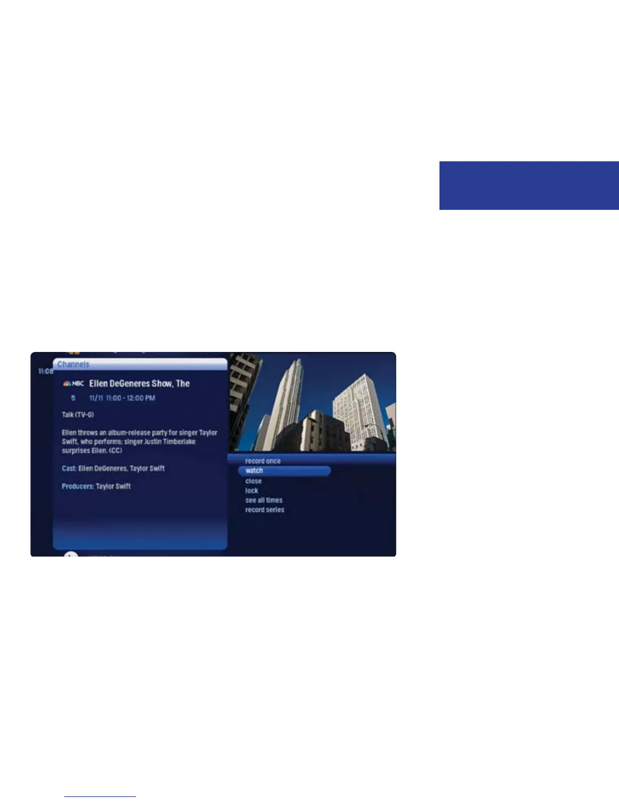 Action menus have a focus, just like the Moxi Menu. To select an option, bring it