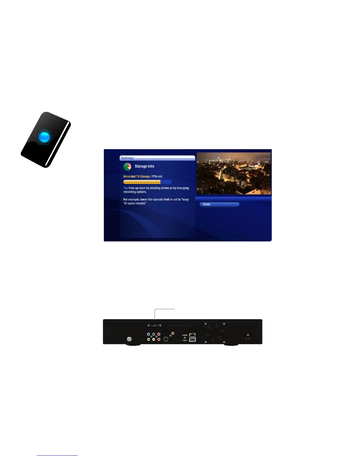 You can add extra storage space to your Moxi HD DVR with an external hard drive. The storage meter lets you