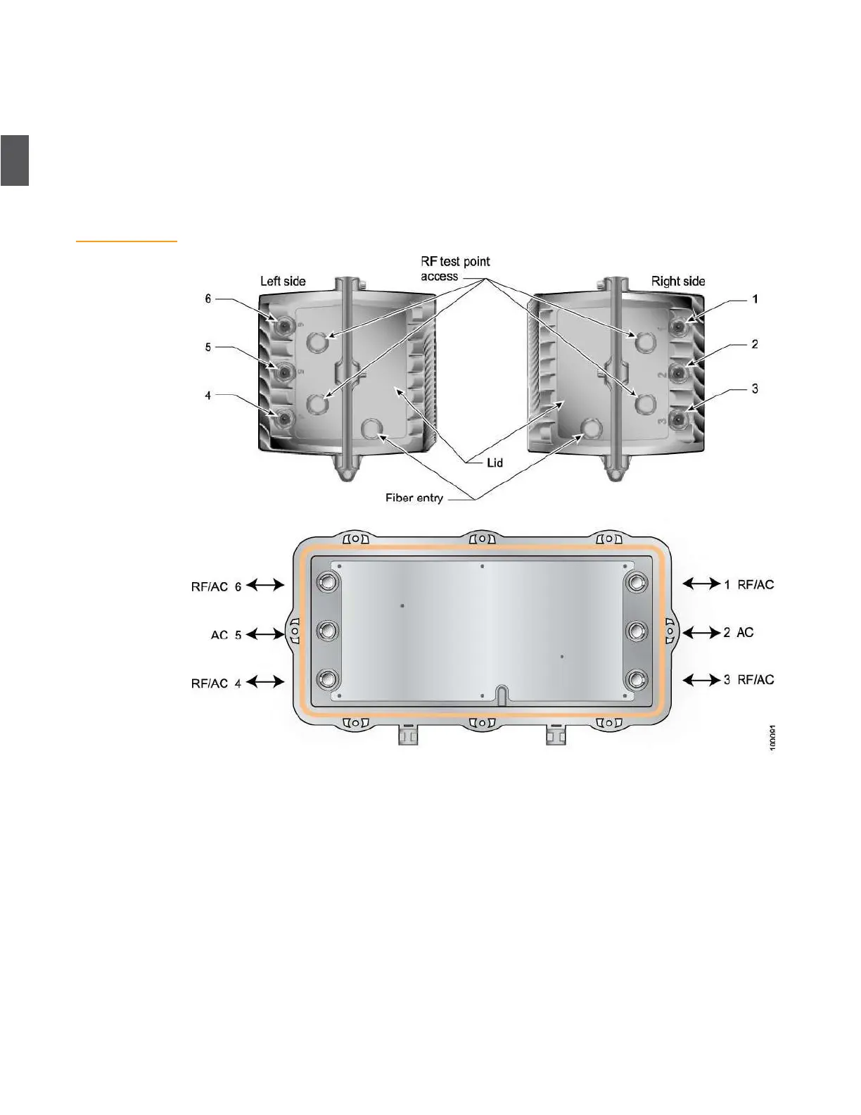 There are six coaxial cable entry ports on the housing base (Figure 2.4). Generally, ports P1, P3, P4,