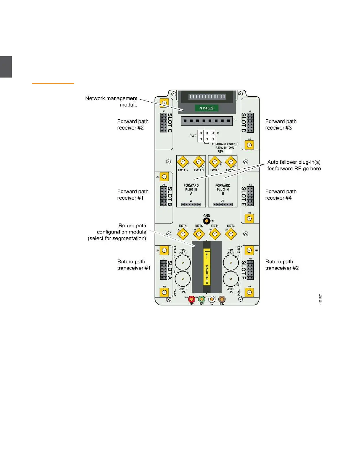 redundancy switch plug-ins, and any one of a range of return path configuration modules. RF