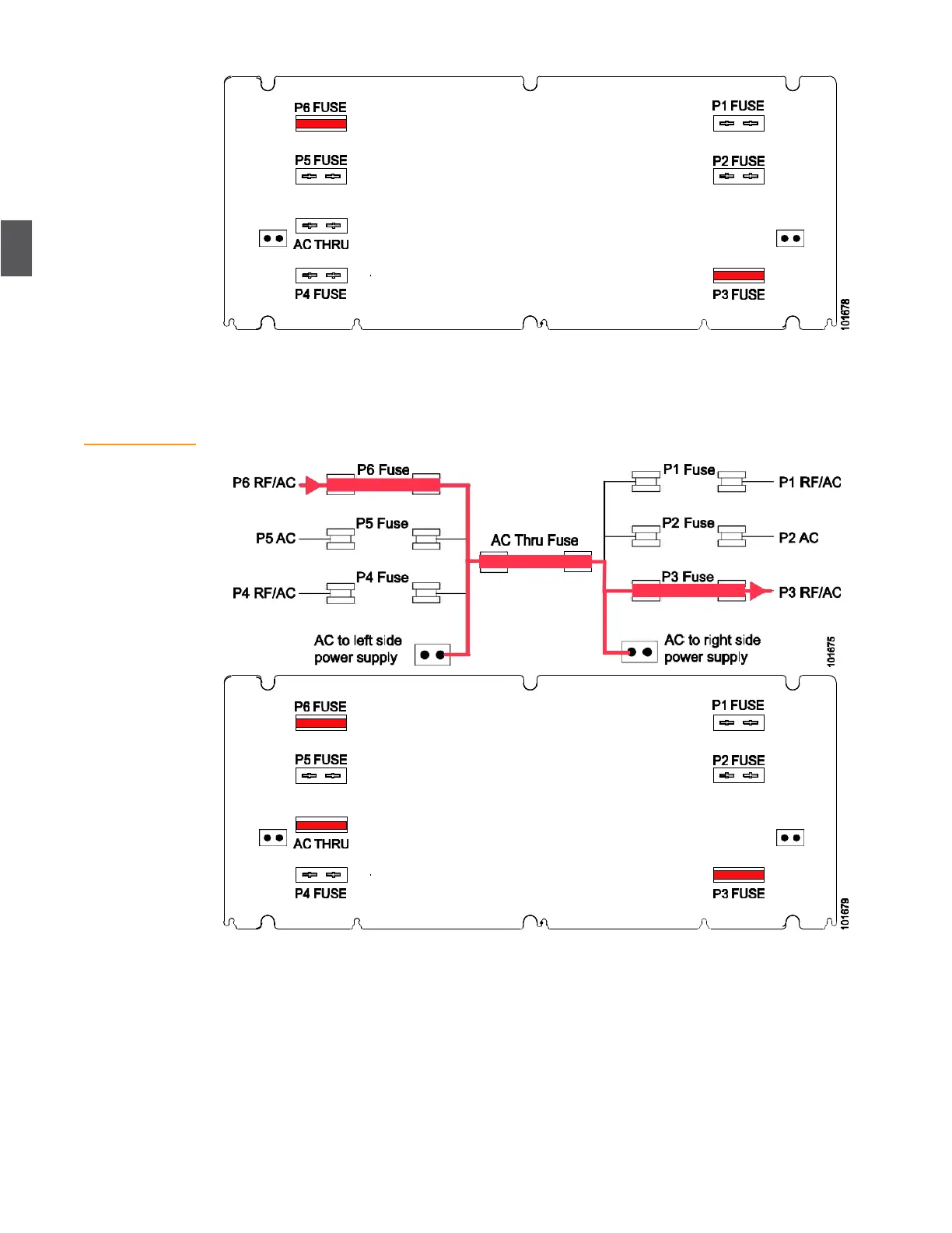 the power supplies through the P6 and AC thru fuses, and is routed out to another device