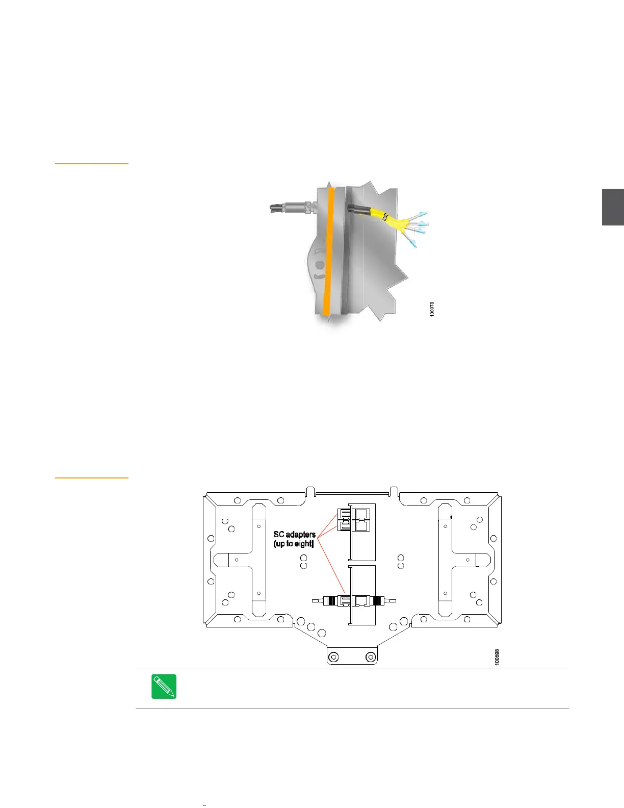 Figure 4.9 shows the underside of the fiber tray. Up to eight SC adapters can be installed in the