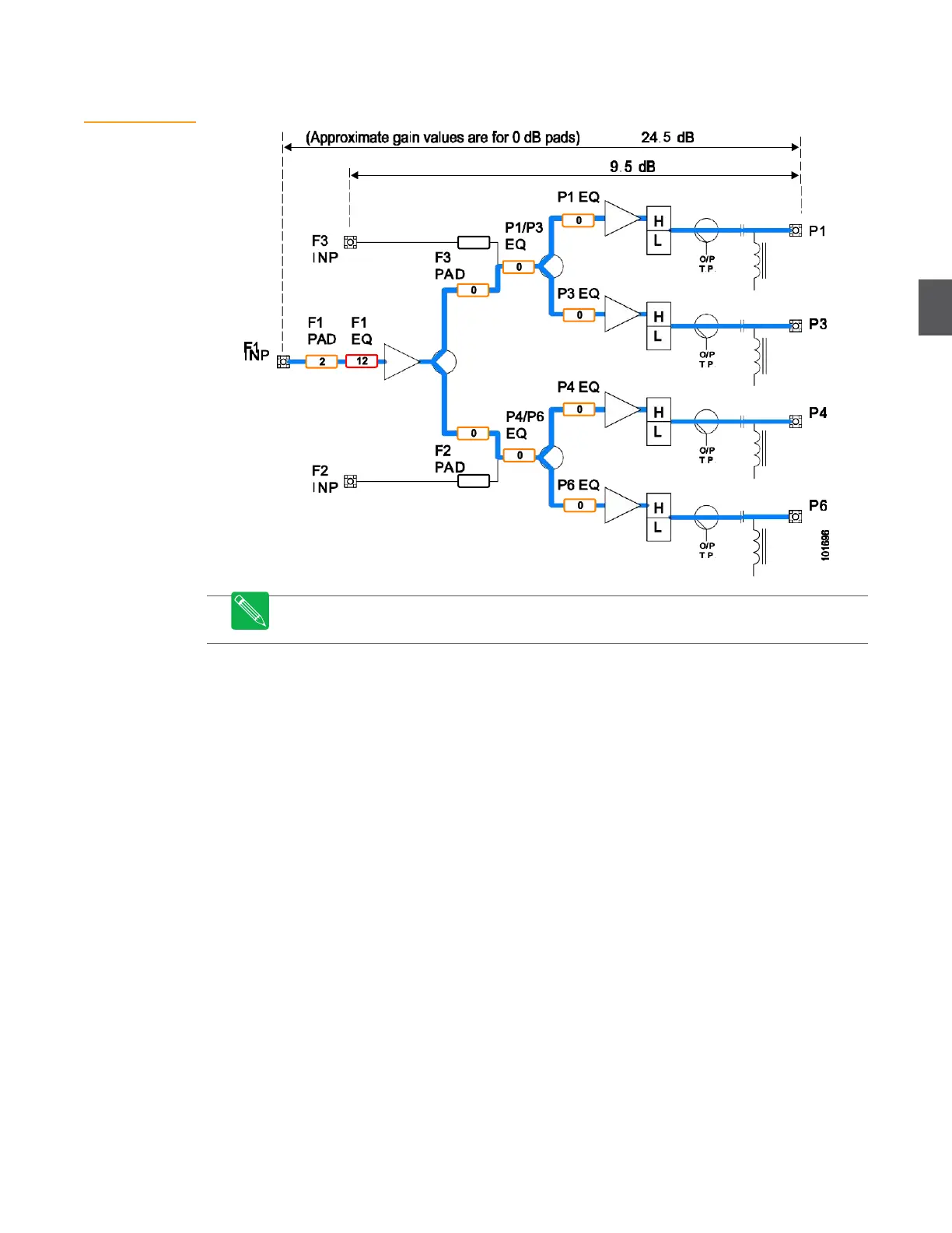Pads (0 dB) are used in some equalizer positions.