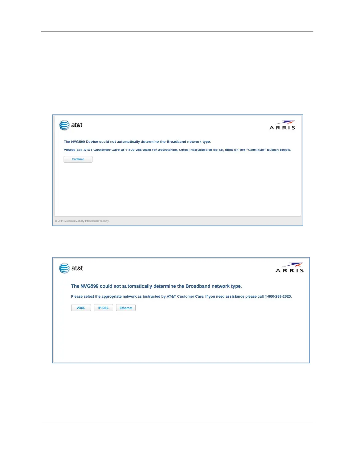 After a few minutes, if the broadband network cannot be determined, the following screen appears. Contact
