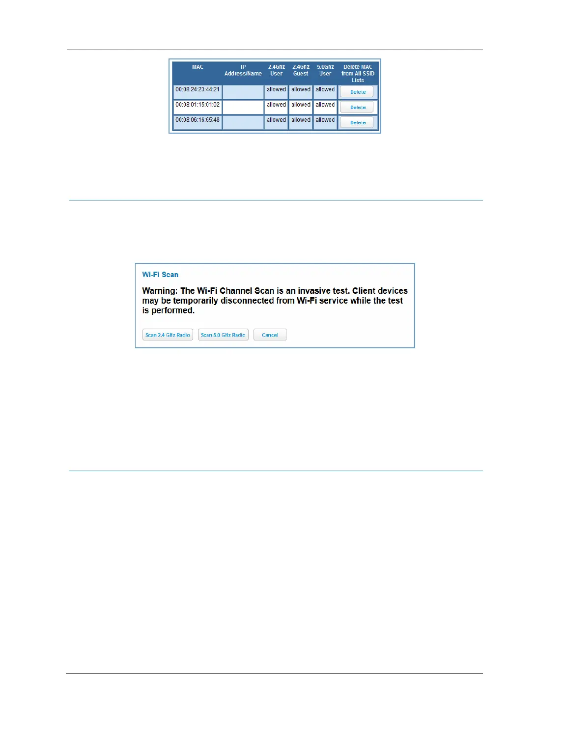 The scan covers a frequency range within the 2.4 Ghz or 5.0 Ghz band. Channel selection depends on