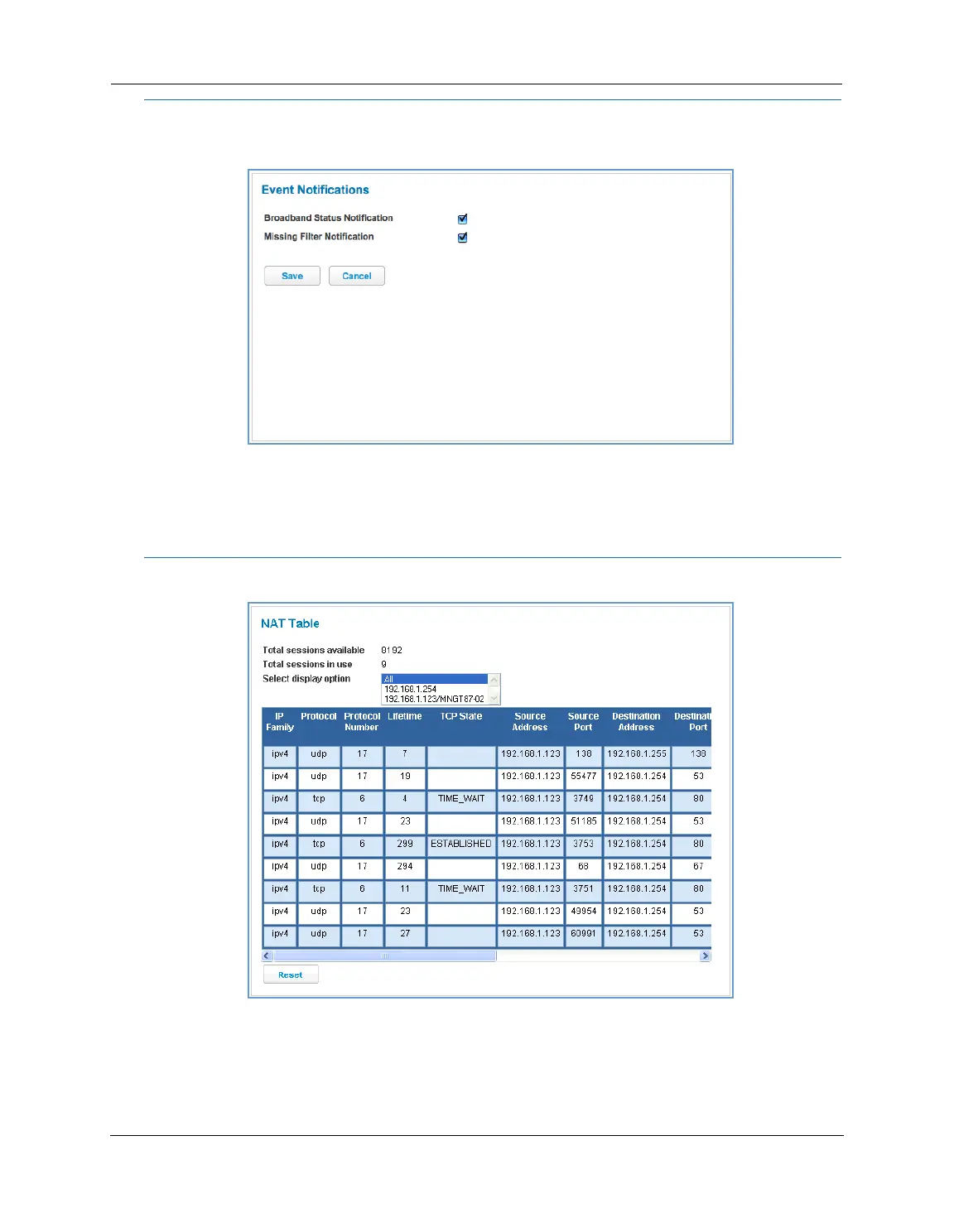 When you click the NAT Table link, the NAT Table page appears.