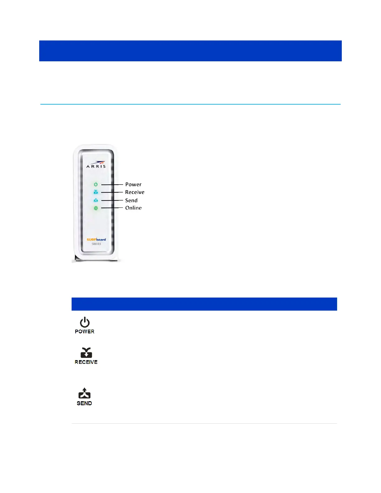 SB6183 front panel LED icons