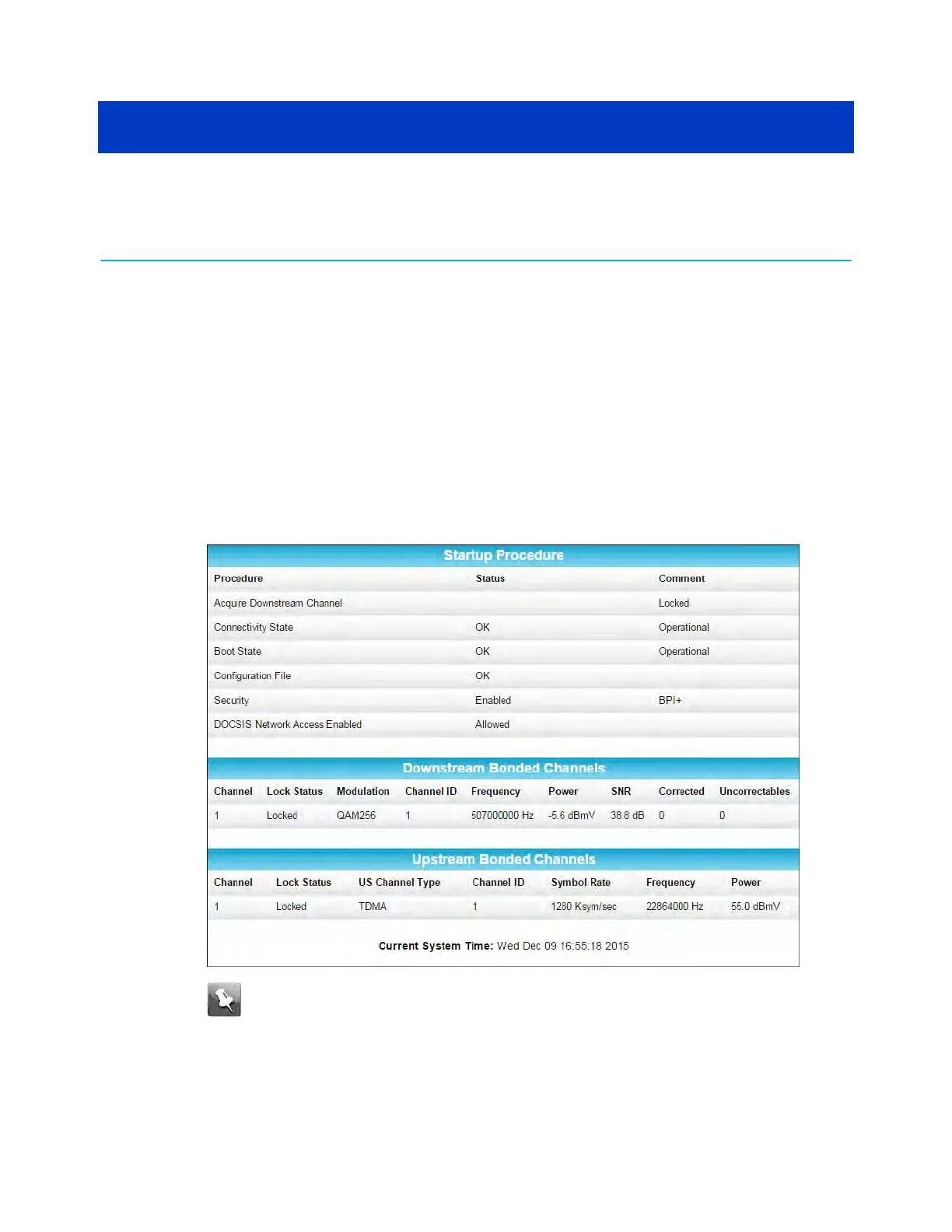 The SB6183 Web Manager is available to view and monitor the cable modem operaonal