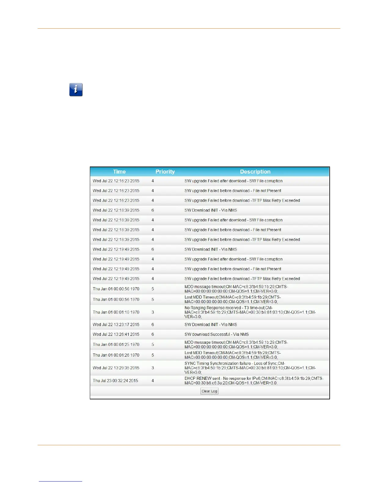 Figure 11: SB6190 Event Log Screen