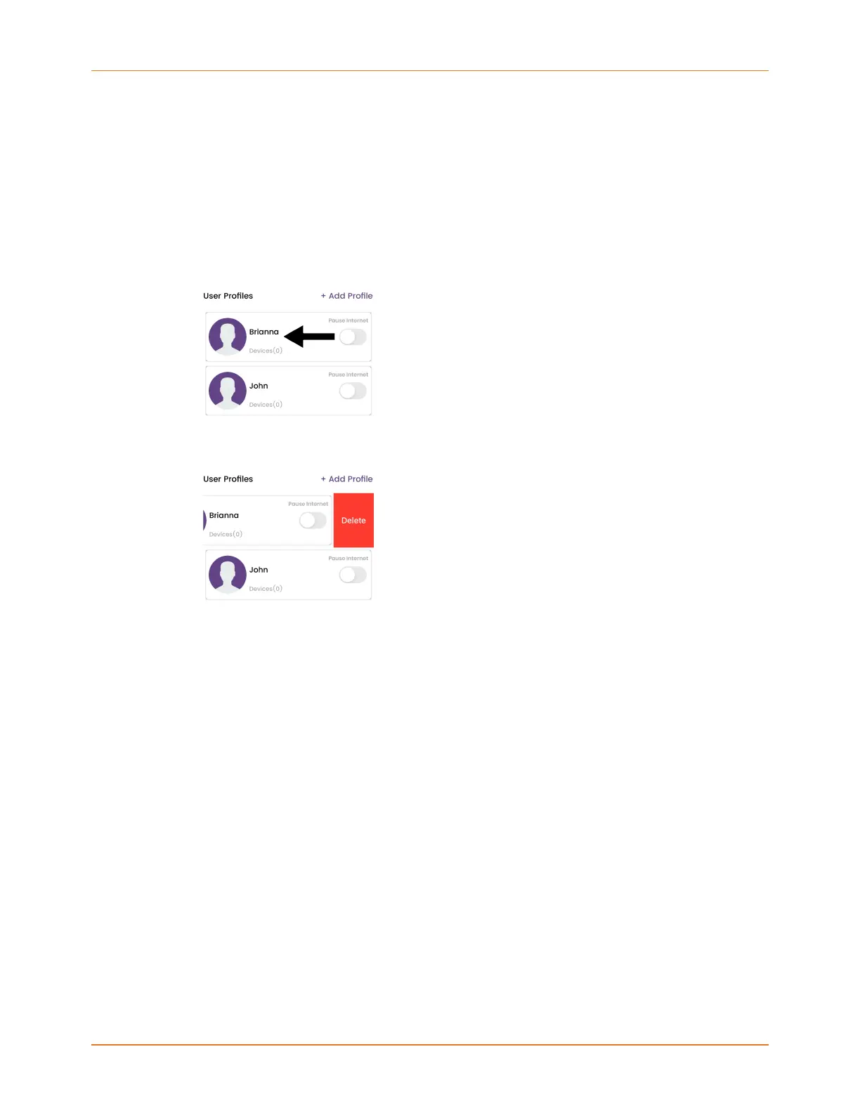 1. Swipe left on the profile/rule/associated device you would like to remove.