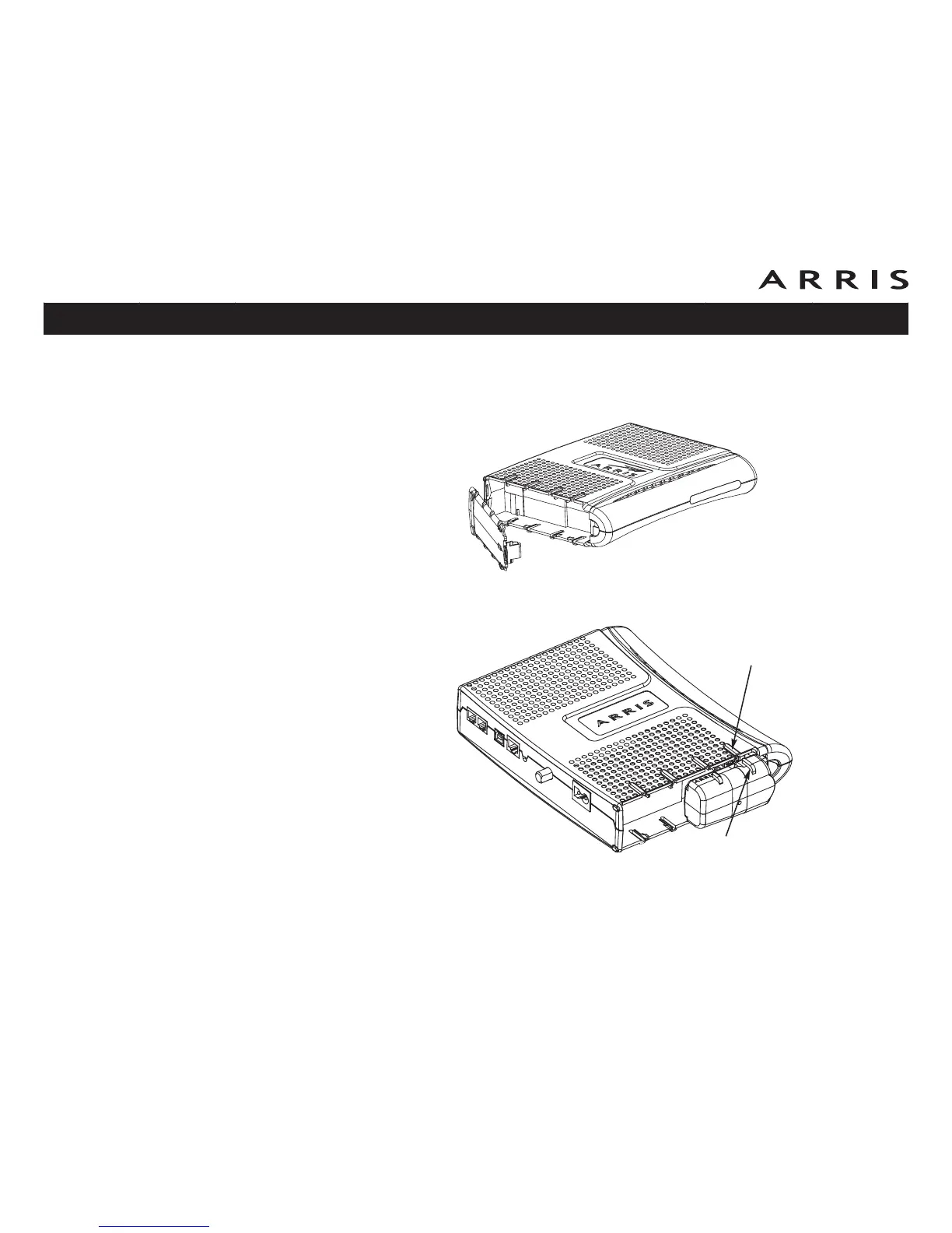 2 Align the guides on the battery with the slots on the Telephony Modem as