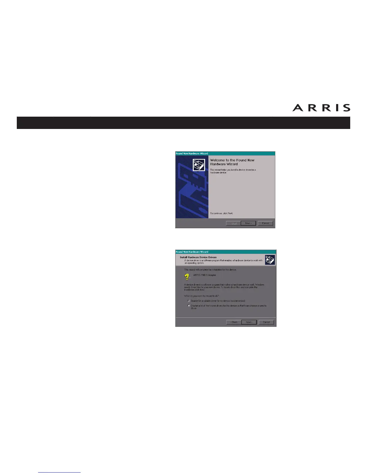 Note: The dialog indicates that the wizard is looking for the ARRIS RNDIS