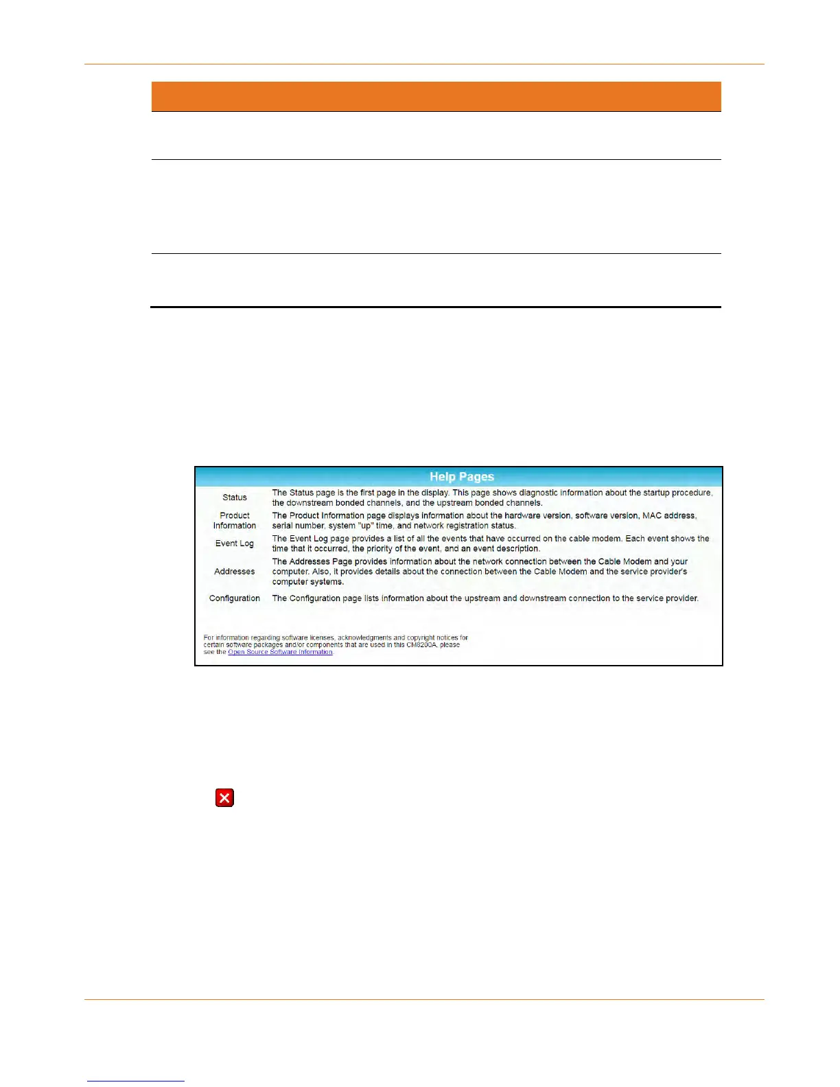 Click the Help menu button or link on the CM8200 Web Manager screen to open the
