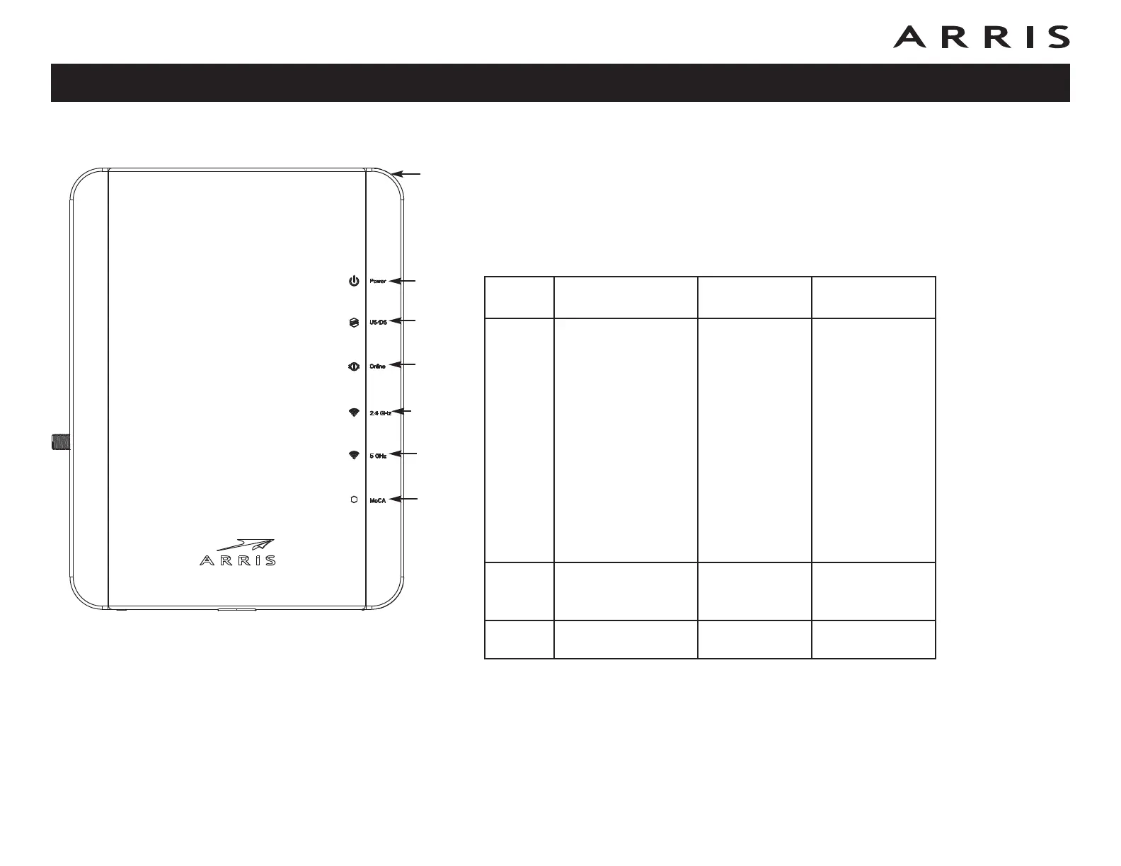 The following table shows light patterns for the Ethernet, MoCA and wireless LANs