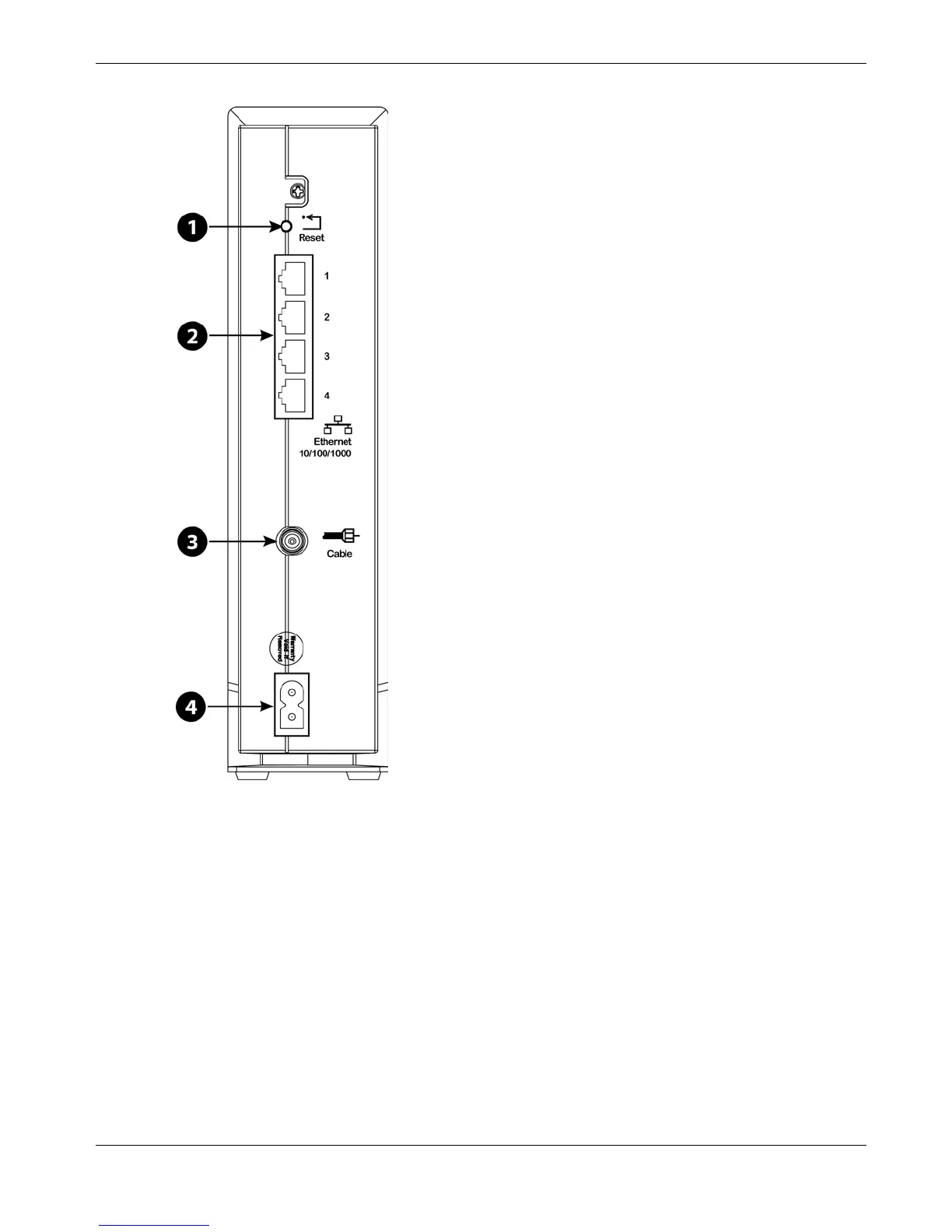 To reset the router to factory defaults, press and hold the Reset button (1) on the back of