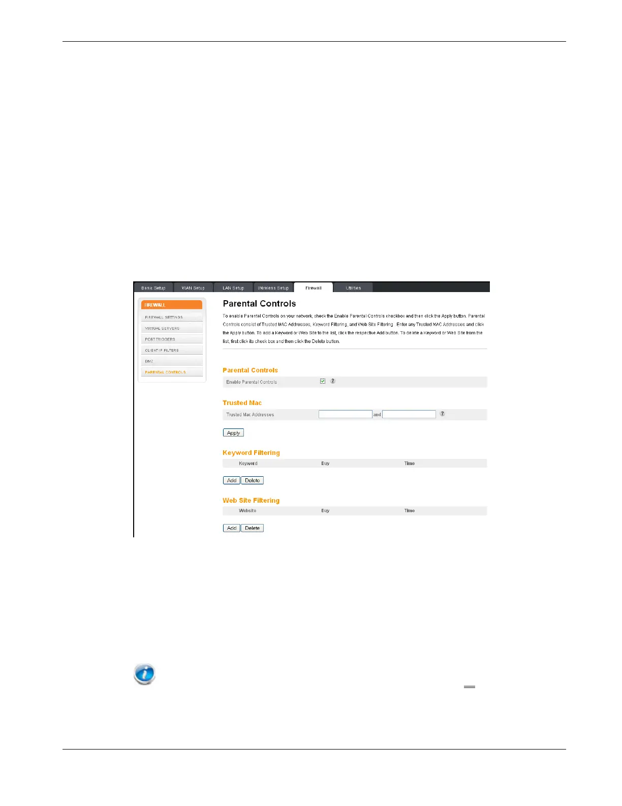 Firewall tab and then click Parental Controls in the side menu to display the