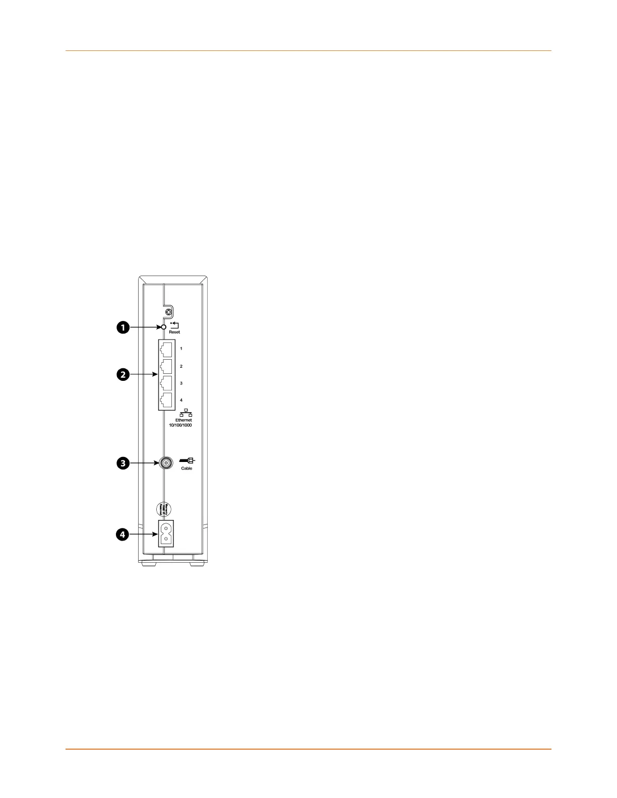 2. Ethernet (1 - 4): Connectors for use with a computer LAN port.