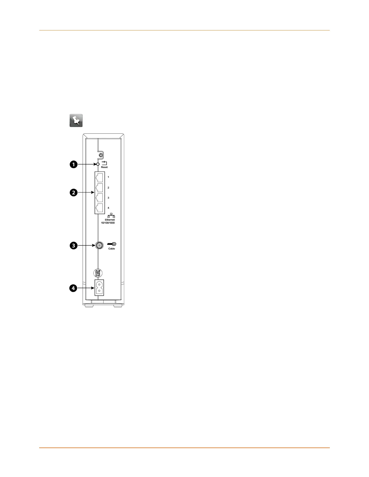 2. Ethernet (1 - 4): Connectors for use with a computer LAN port.