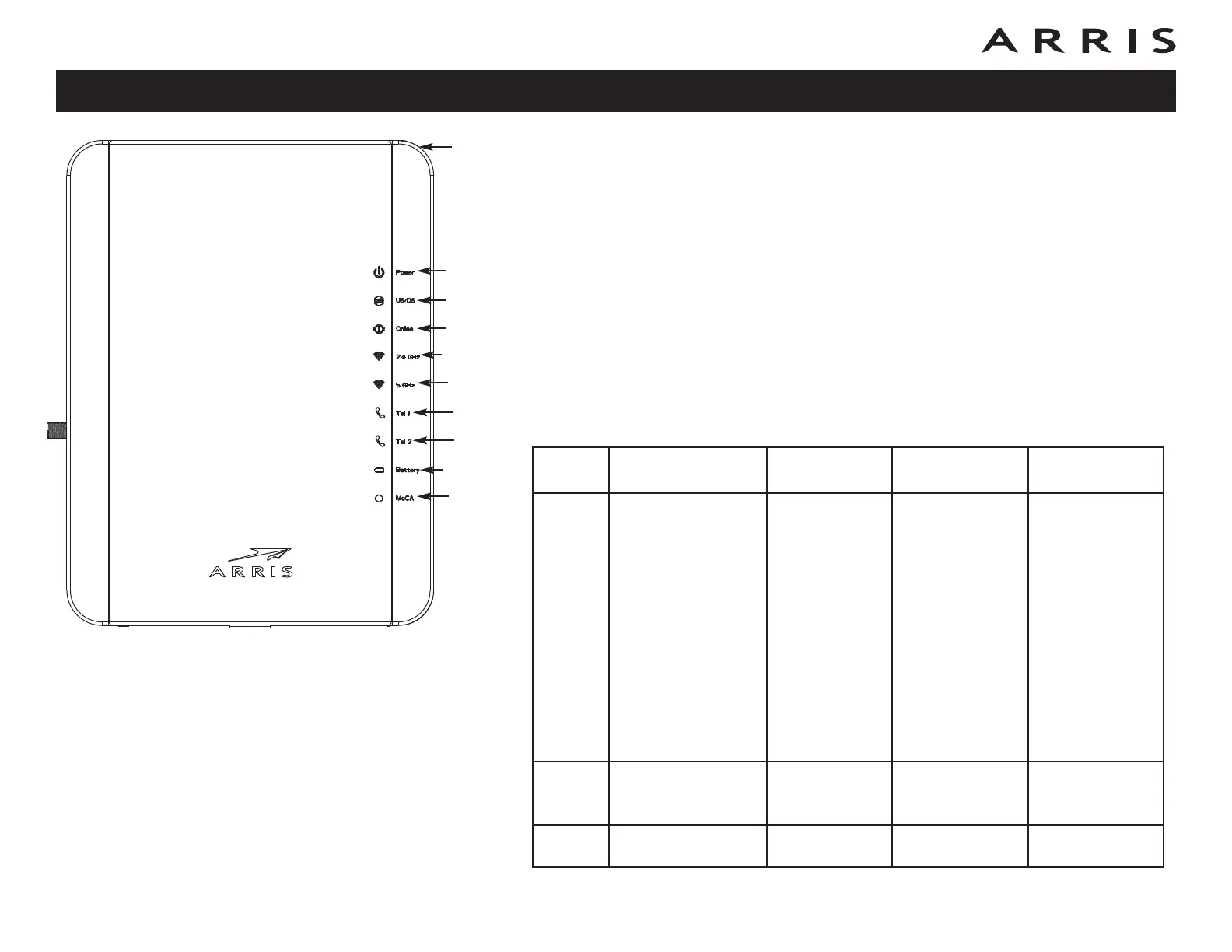 The following table shows light patterns for the Ethernet, MoCA and wireless LANs,