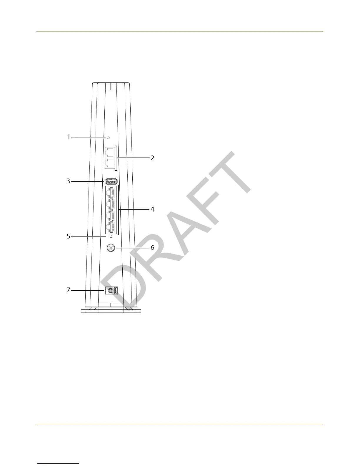 1. Reset button: resets the Telephony Gateway as if you power cycled the unit. Use a