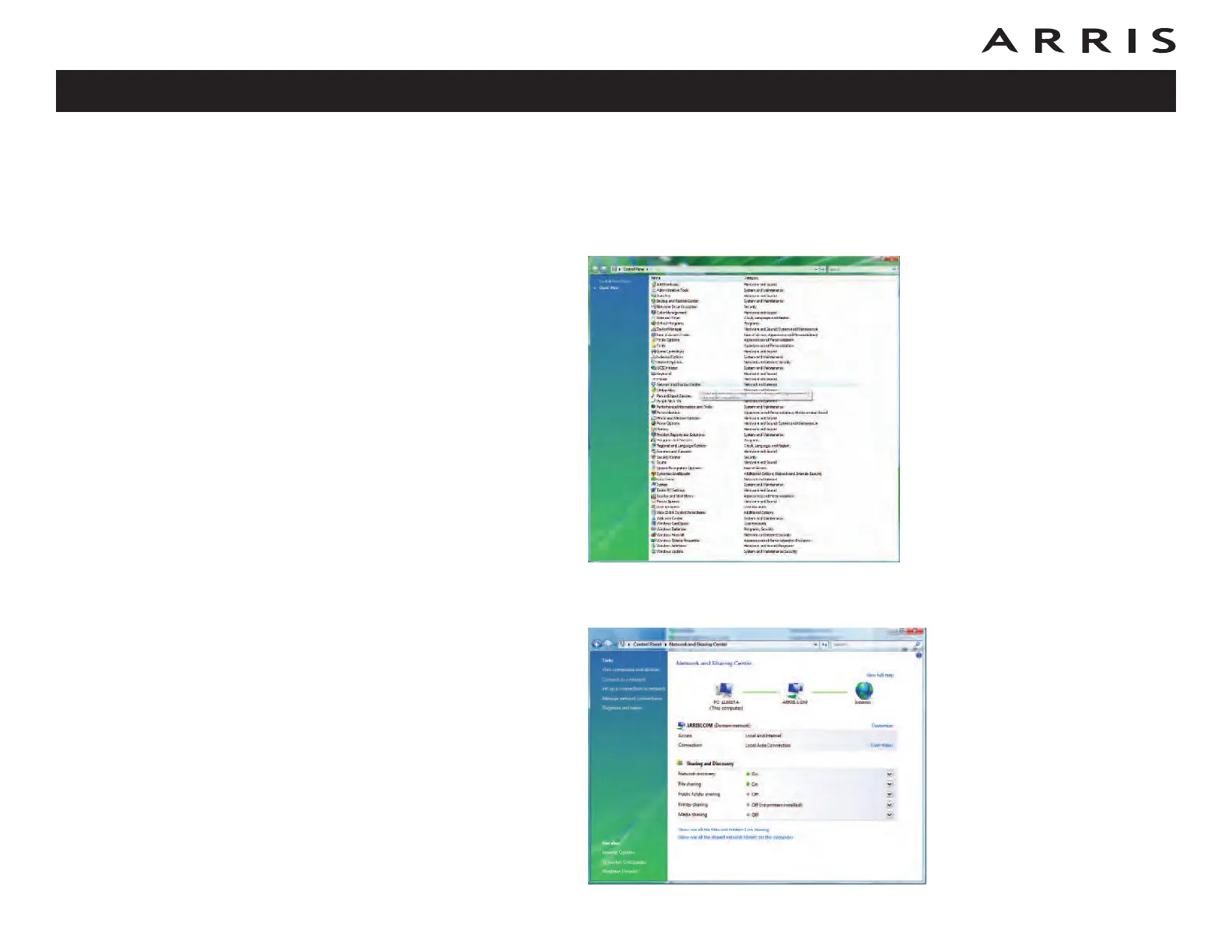 2 Double-click Network and Sharing Center to display the Network and