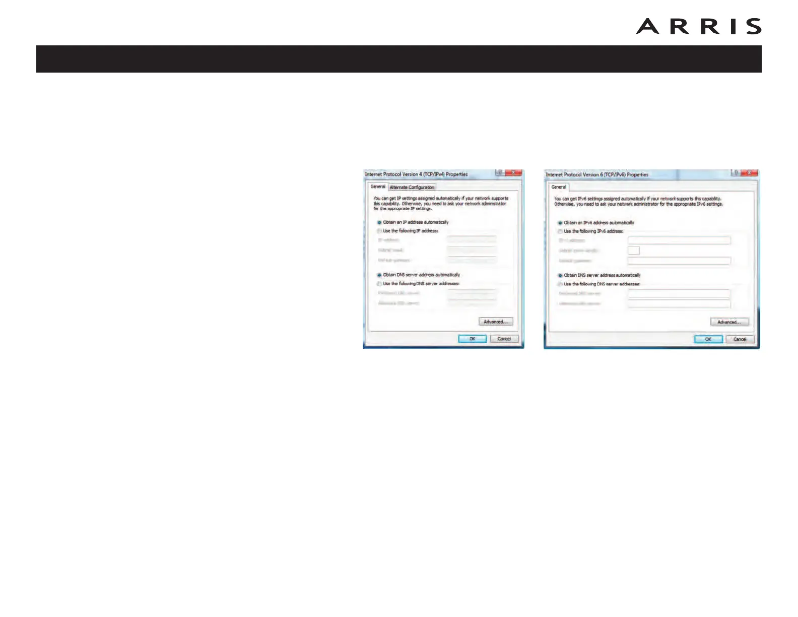 6 For either TCP/IPv4 or TCP/IPv6, select Obtain an IP address automati-
