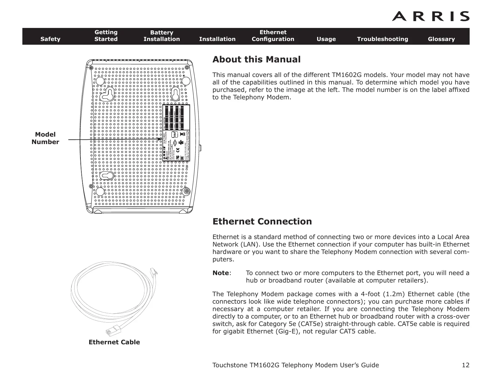 Touchstone TM1602G Telephony Modem User’s Guide