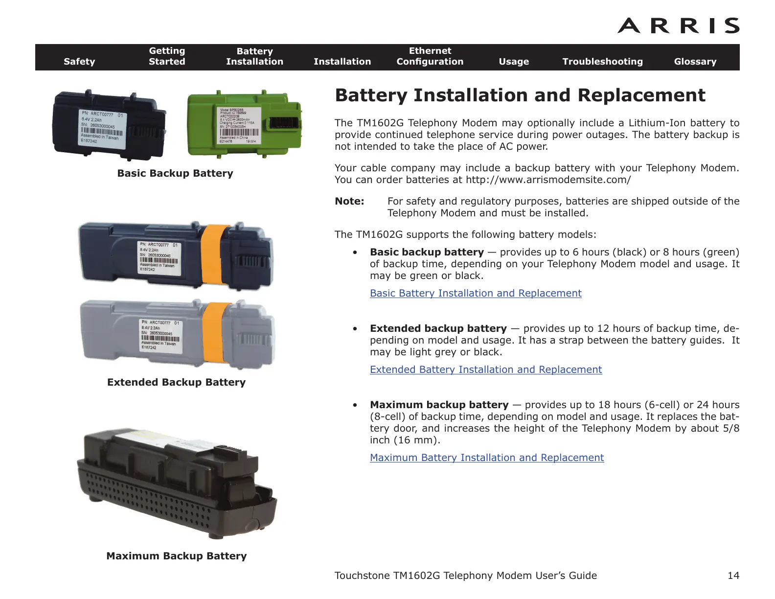 You can order batteries at http://www.arrismodemsite.com/