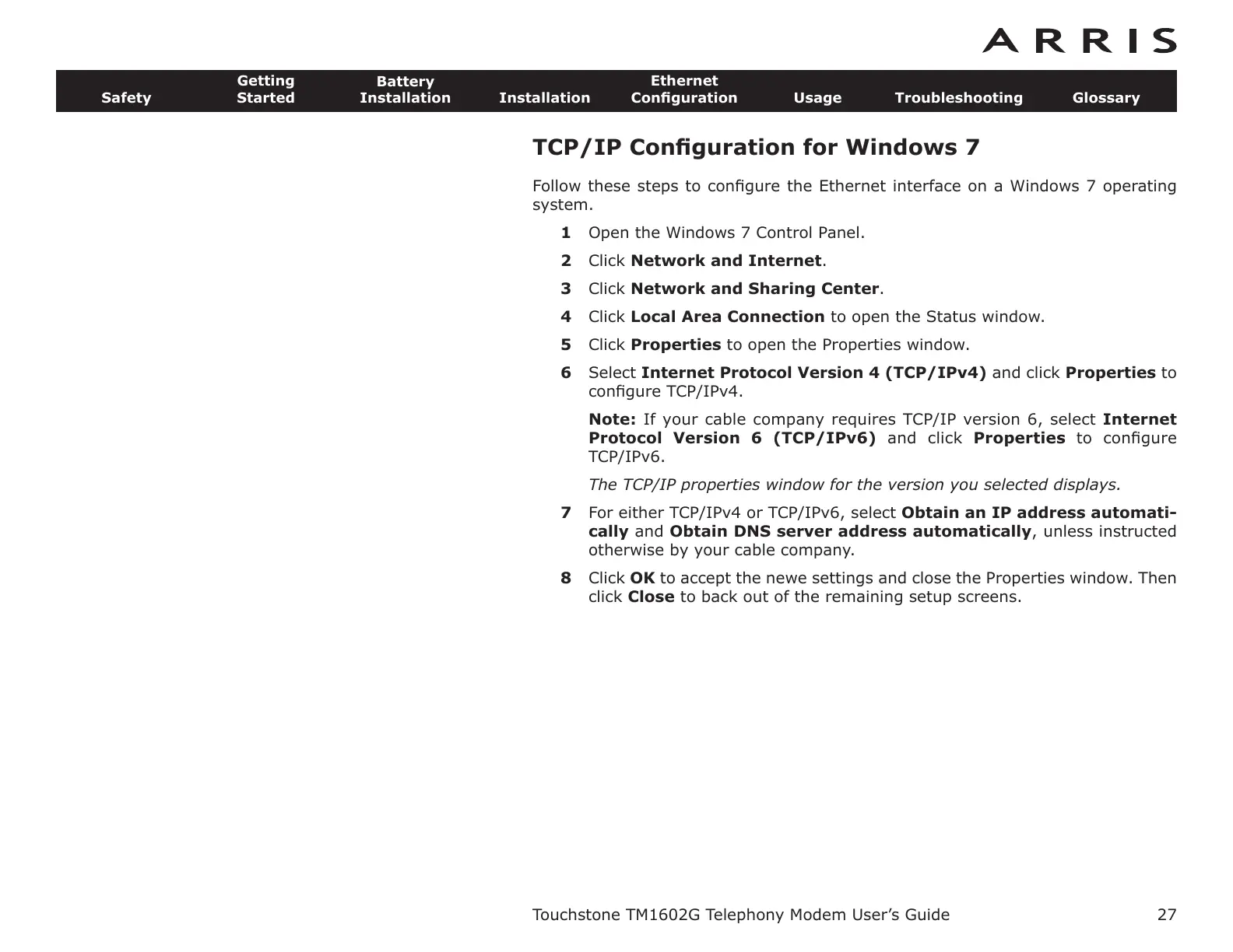 Follow these steps to configure the Ethernet interface on a Windows 7 operating