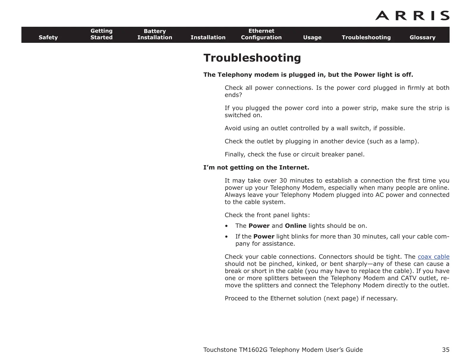 Touchstone TM1602G Telephony Modem User’s Guide