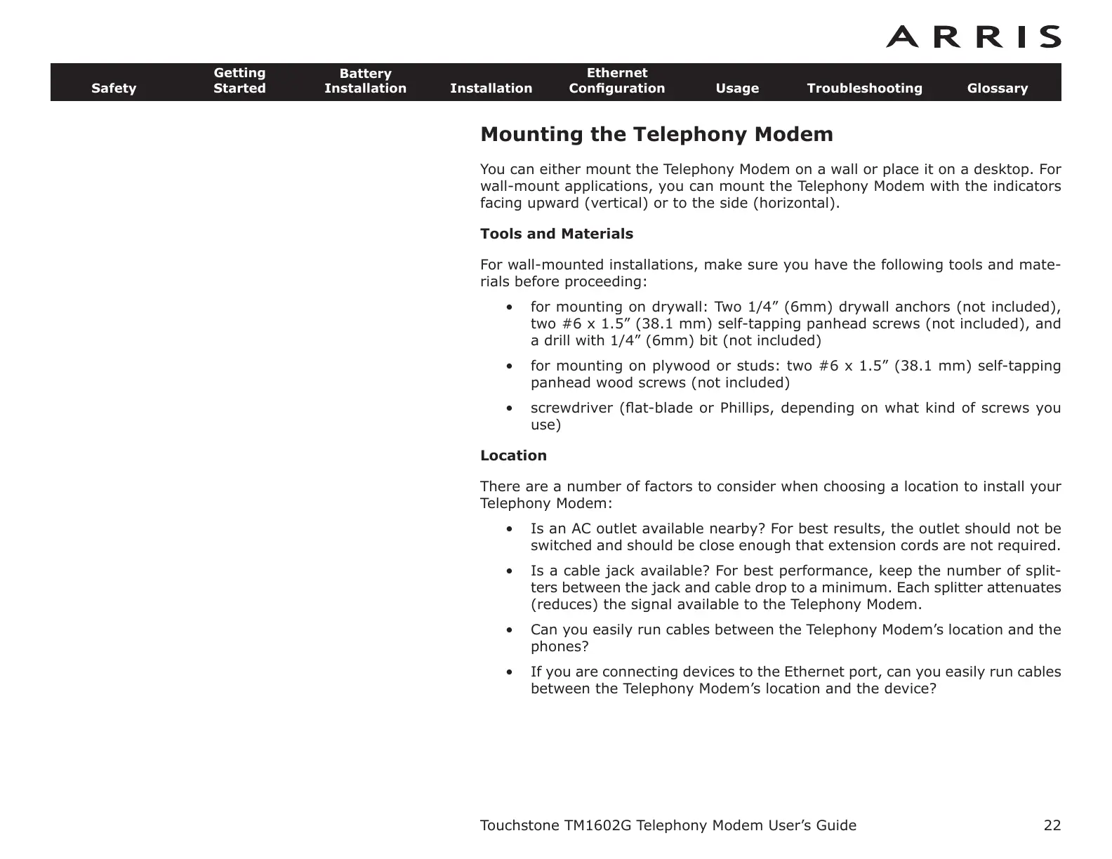 Touchstone TM1602G Telephony Modem User’s Guide