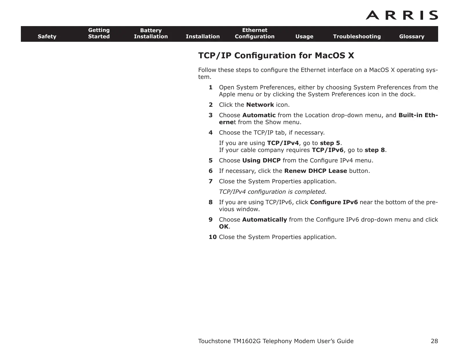 If your cable company requires TCP/IPv6, go to step 8.