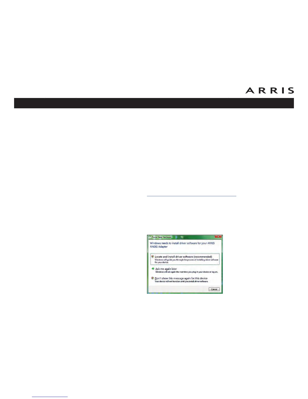 1 Download the zipped Vista USB driver from the ARRIS website at the fol-