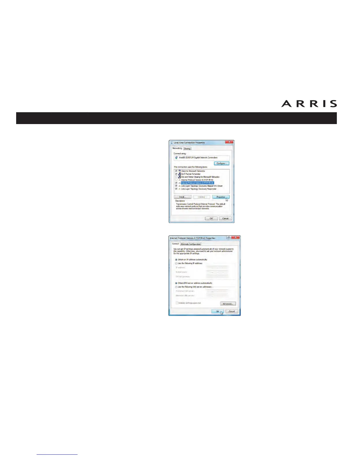 7 Select Obtain an IP address automatically and Obtain DNS server