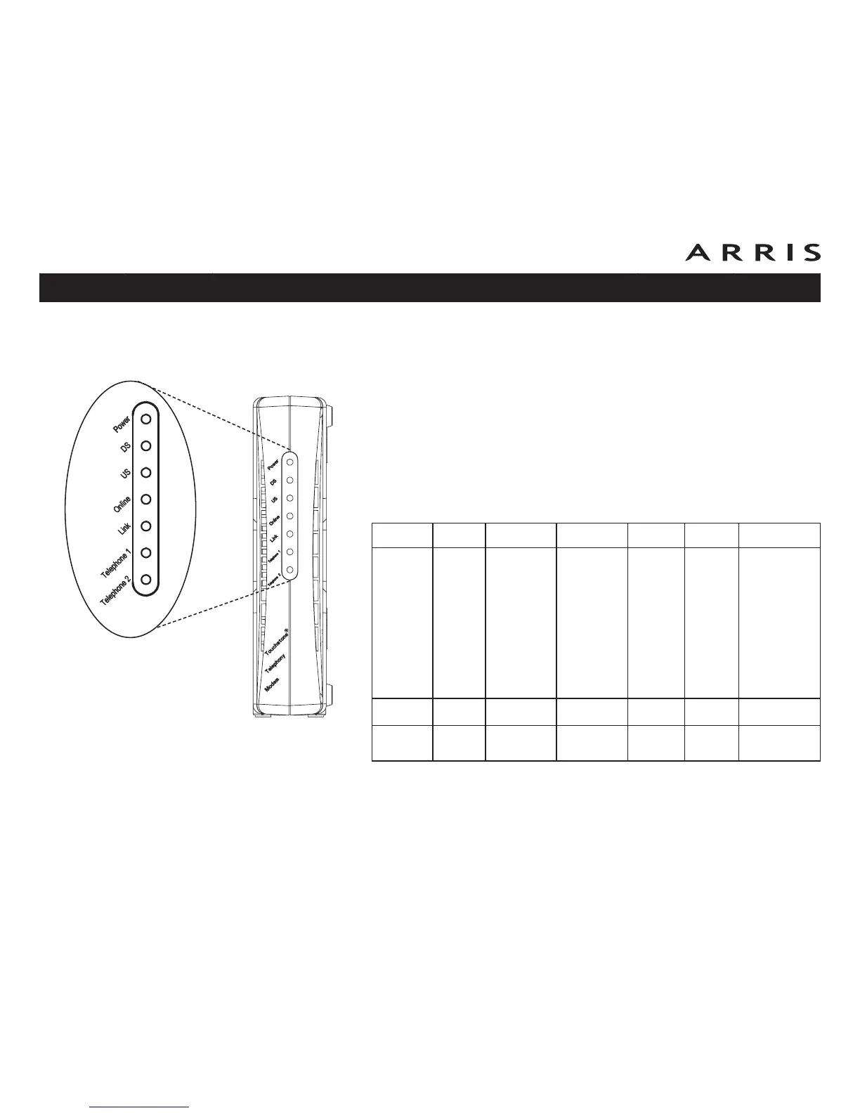 The Touchstone Telephony Modem has seven LEDs to assist in troubleshooting.