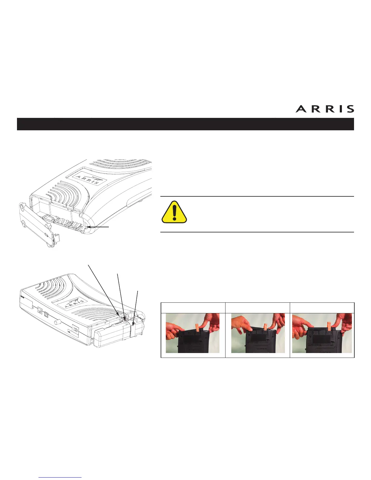 holding the battery door (on the bottom of the Telephony Modem). Pull the