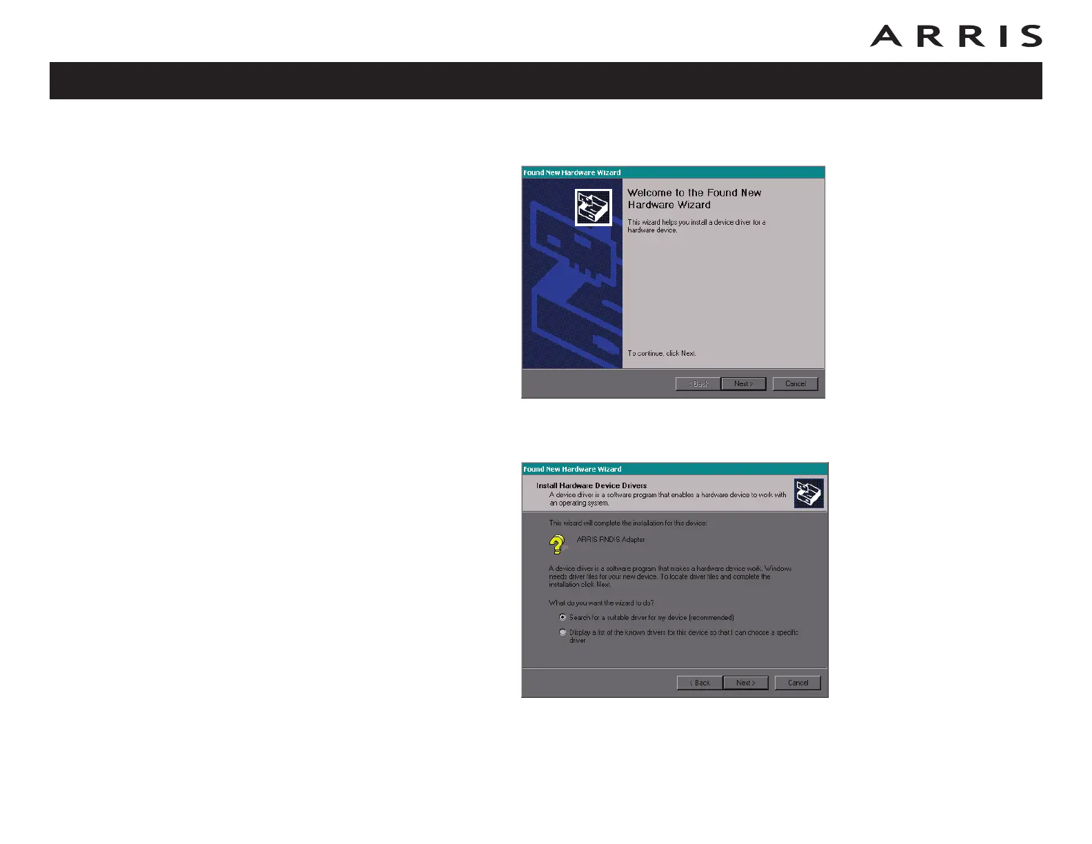 Note: The dialog indicates that the wizard is looking for the ARRIS RNDIS