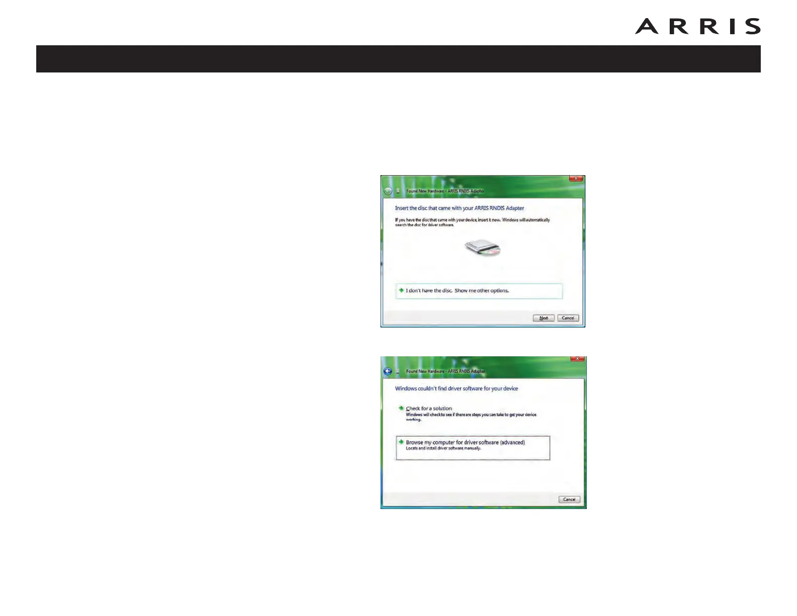 driver software” at the bottom right of the screen. Vista will not find the
