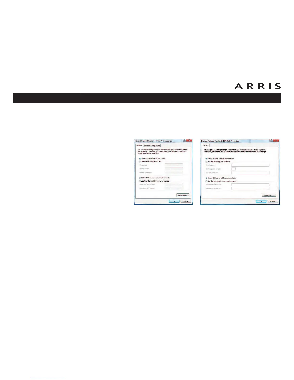 6 For either TCP/IPv4 or TCP/IPv6, select Obtain an IP address automati-