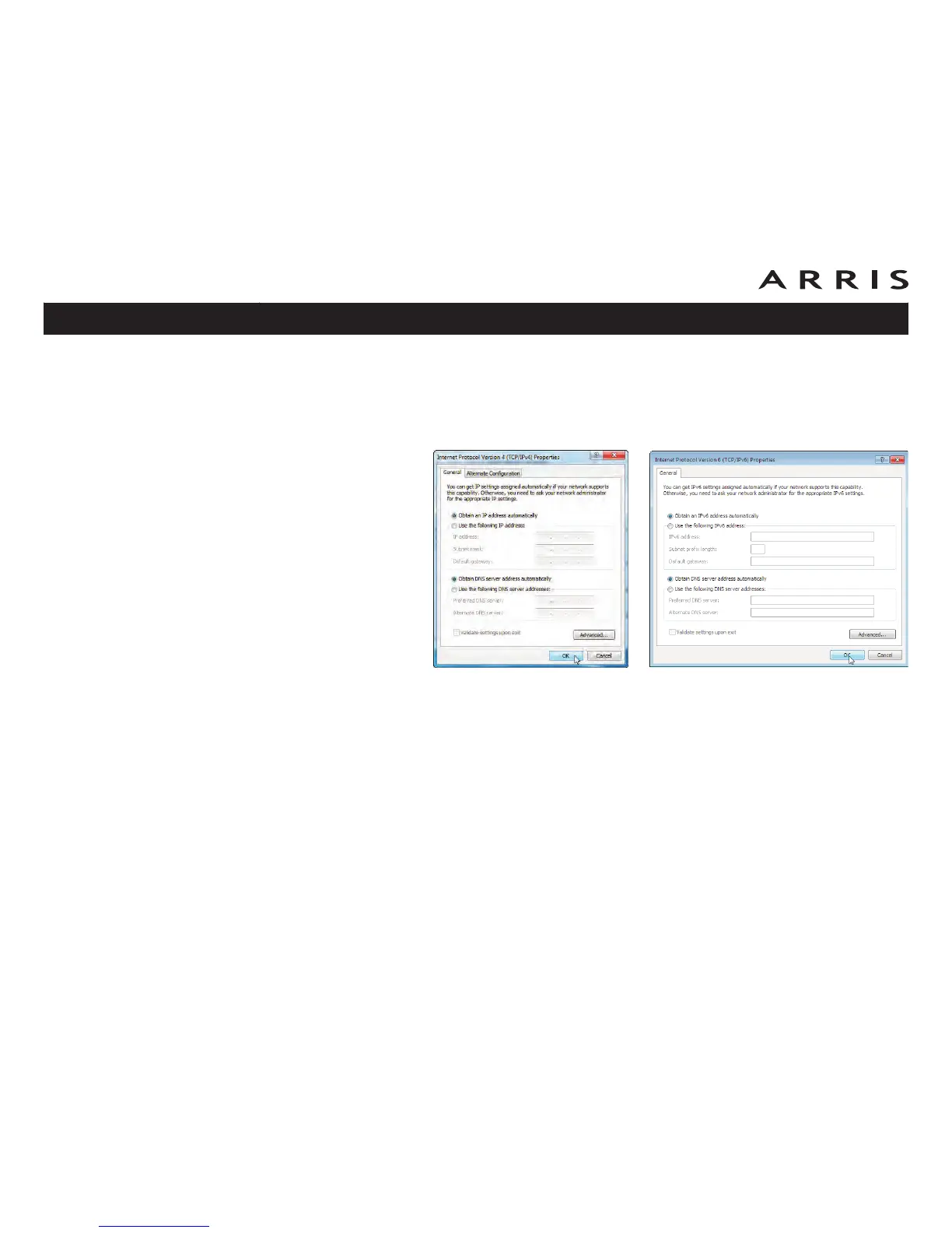 7 For either TCP/IPv4 or TCP/IPv6, select Obtain an IP address automati-