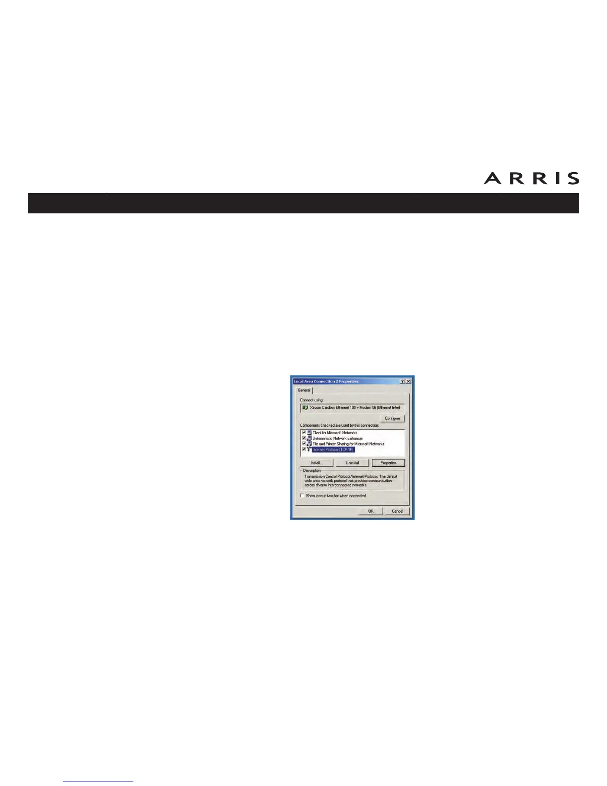 2 In the Local Area Connections Properties window, highlight TCP/IP by click-