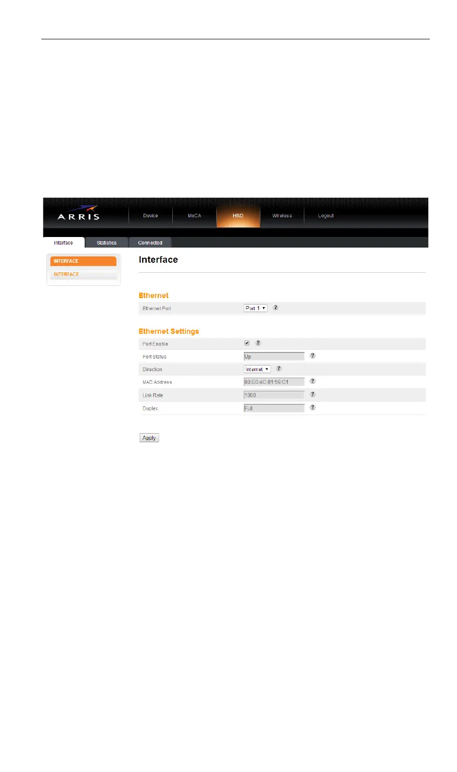 Access the configuration interface and select the HSD tab, Interface
