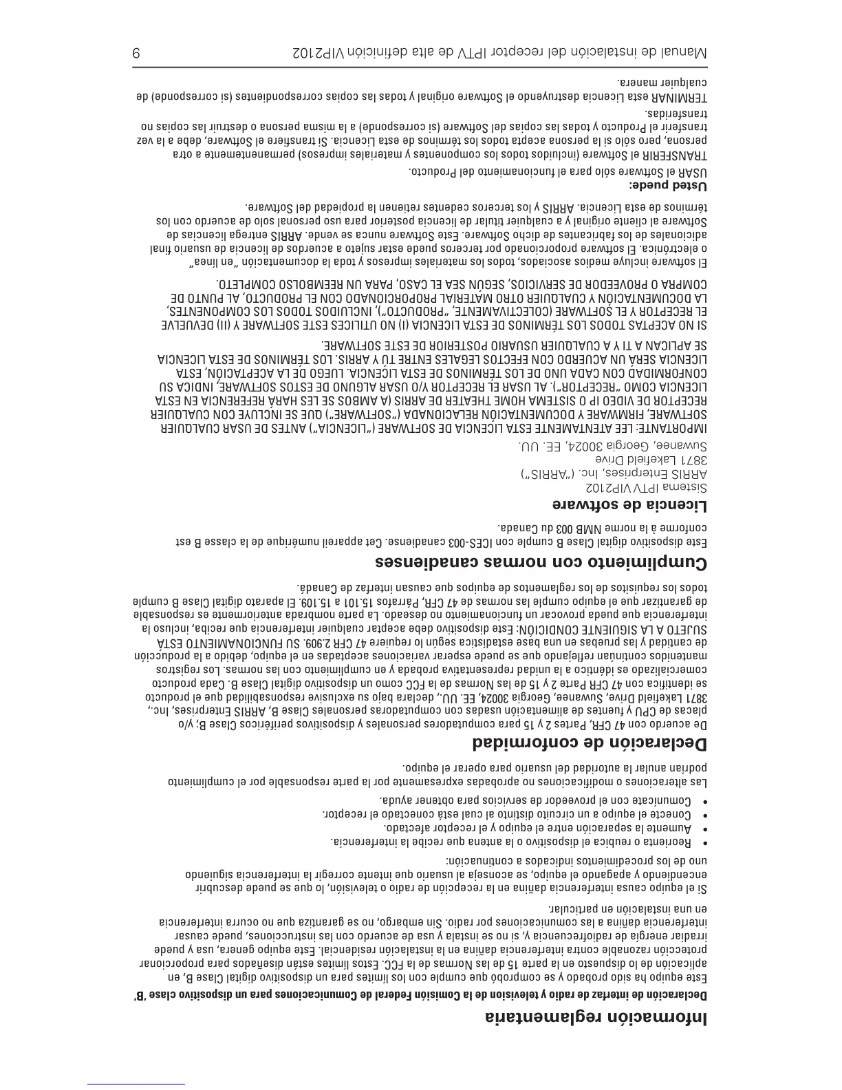 términos de esta Licencia. ARRIS y los terceros cedentes retienen la propiedad del Software.