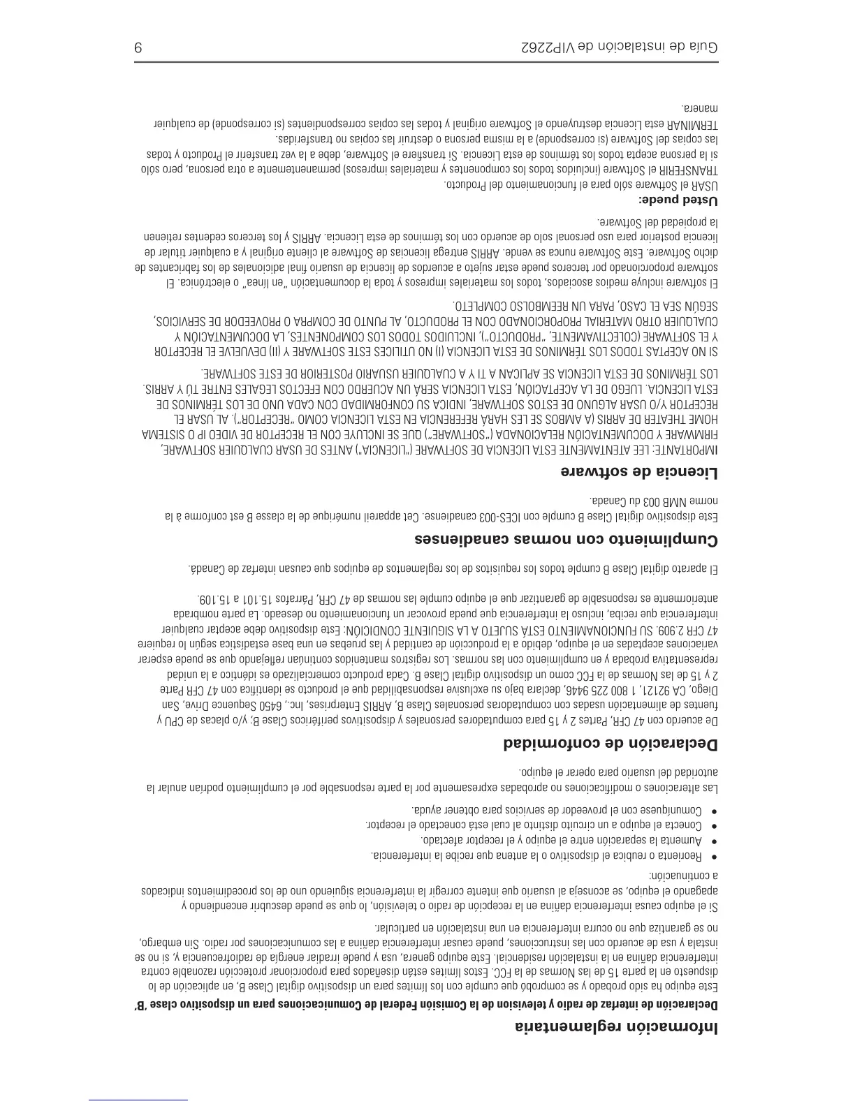 dicho Software. Este Software nunca se vende. ARRIS entrega licencias de Software al cliente original y a cualquier titular de