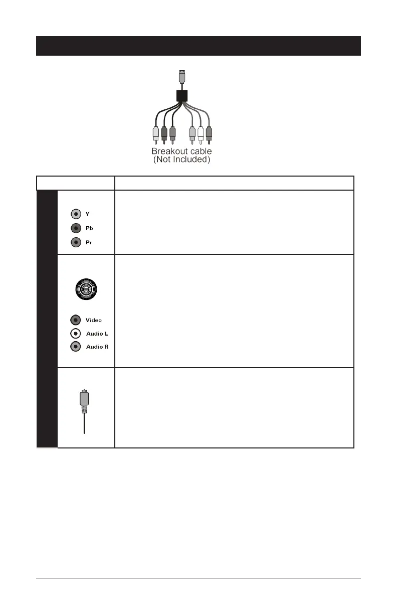 the three standard video connections: Y, Pb, Pr (green, blue, red).