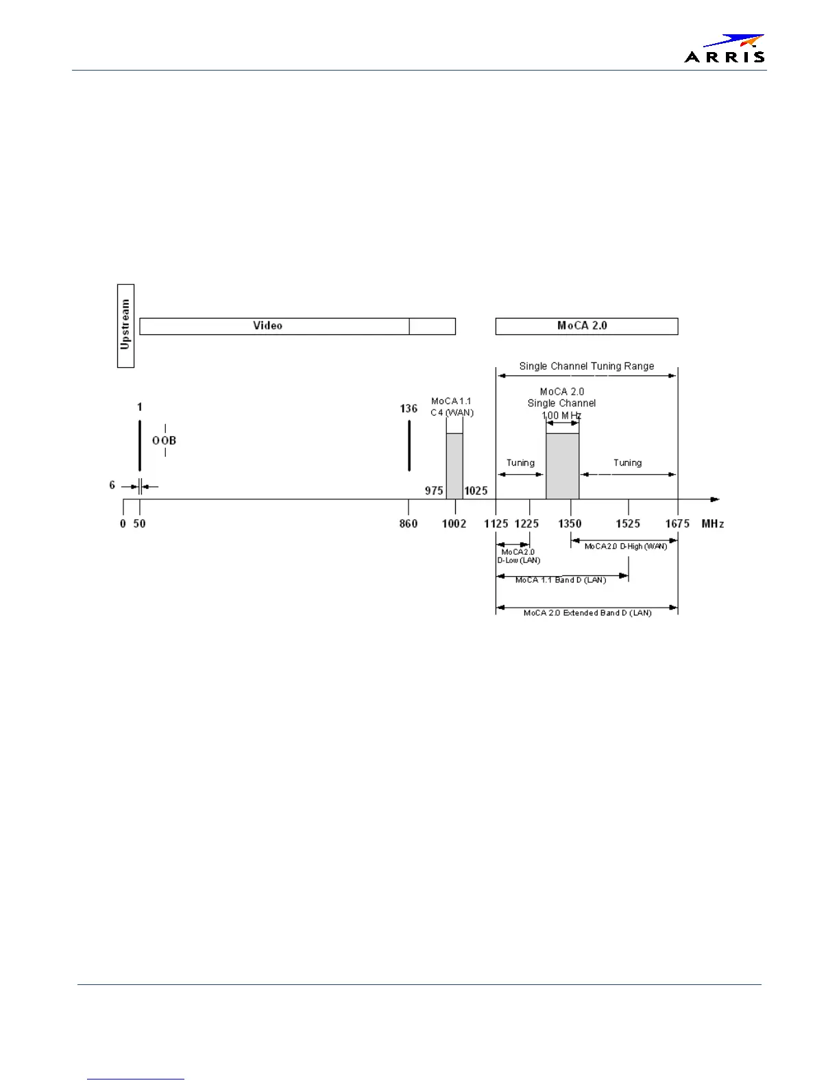 • 1125 to 1225 MHz on the MoCA LAN channel when communicating with any MoCA 2.0 devices
