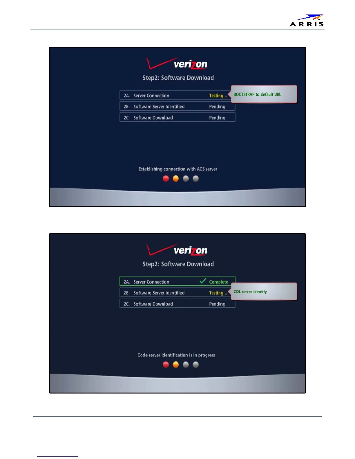 Arris VMS1100 - Figure 25 - Step 2: Software Download Test Screen (1 of 3); Figure 26 - Step 2: Software Download Test Screen (2 of 3)
