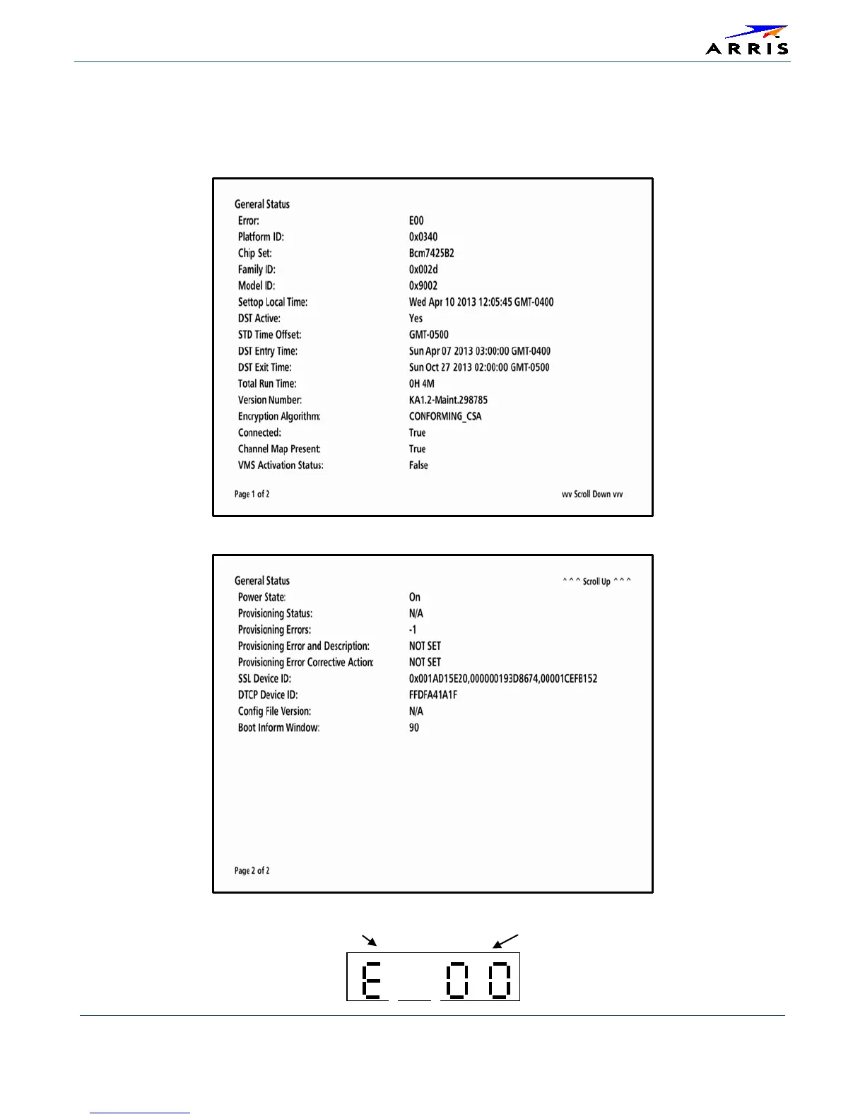 Arris VMS1100 - d01 General Status Diagnostics