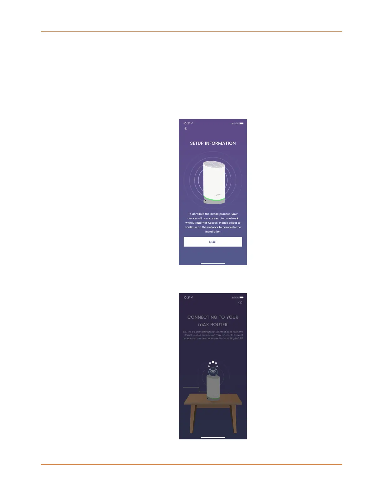 1. On the SETUP INFORMATION screen, tap NEXT to begin getting your router online.